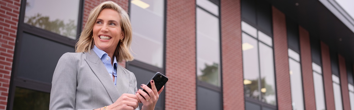 Vrouw met mobiel in haar hand